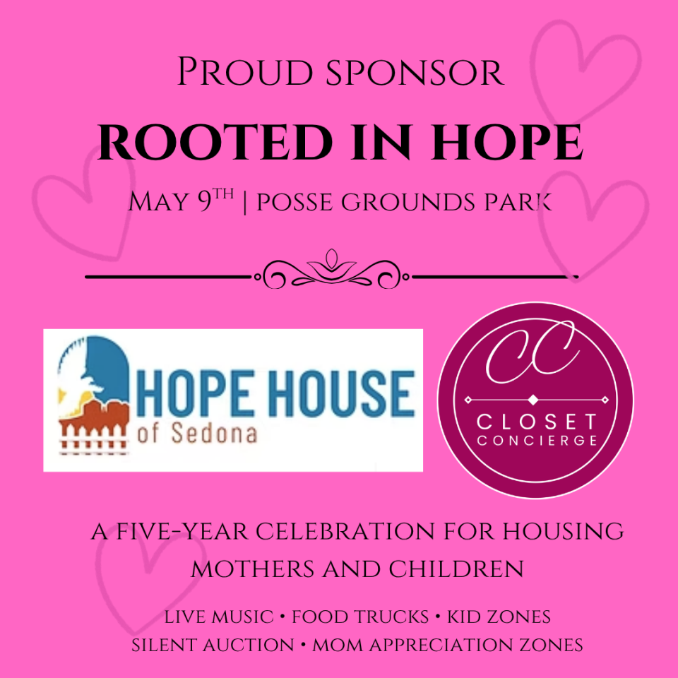 And sometimes, the smallest shift in how you feel when you walk into a room, how you show up for yourself, can be the beginning of something much bigger. That’s why we’re honored to sponsor Rooted in Hope, a special May 9th event celebrating five years of impact by Hope House of Sedona, an organization dedicated to helping families move from crisis to stability through housing, support, and opportunity.